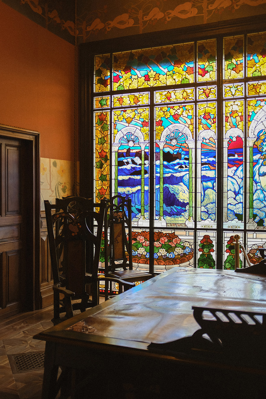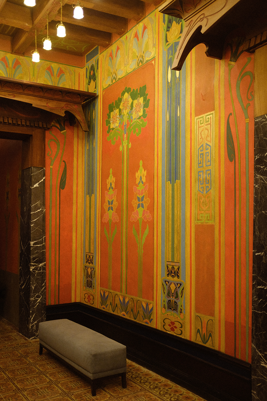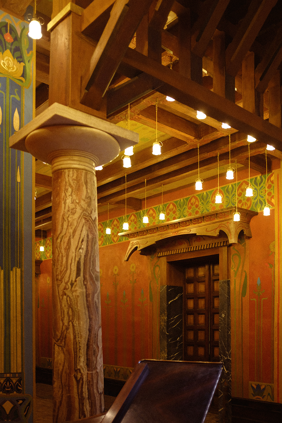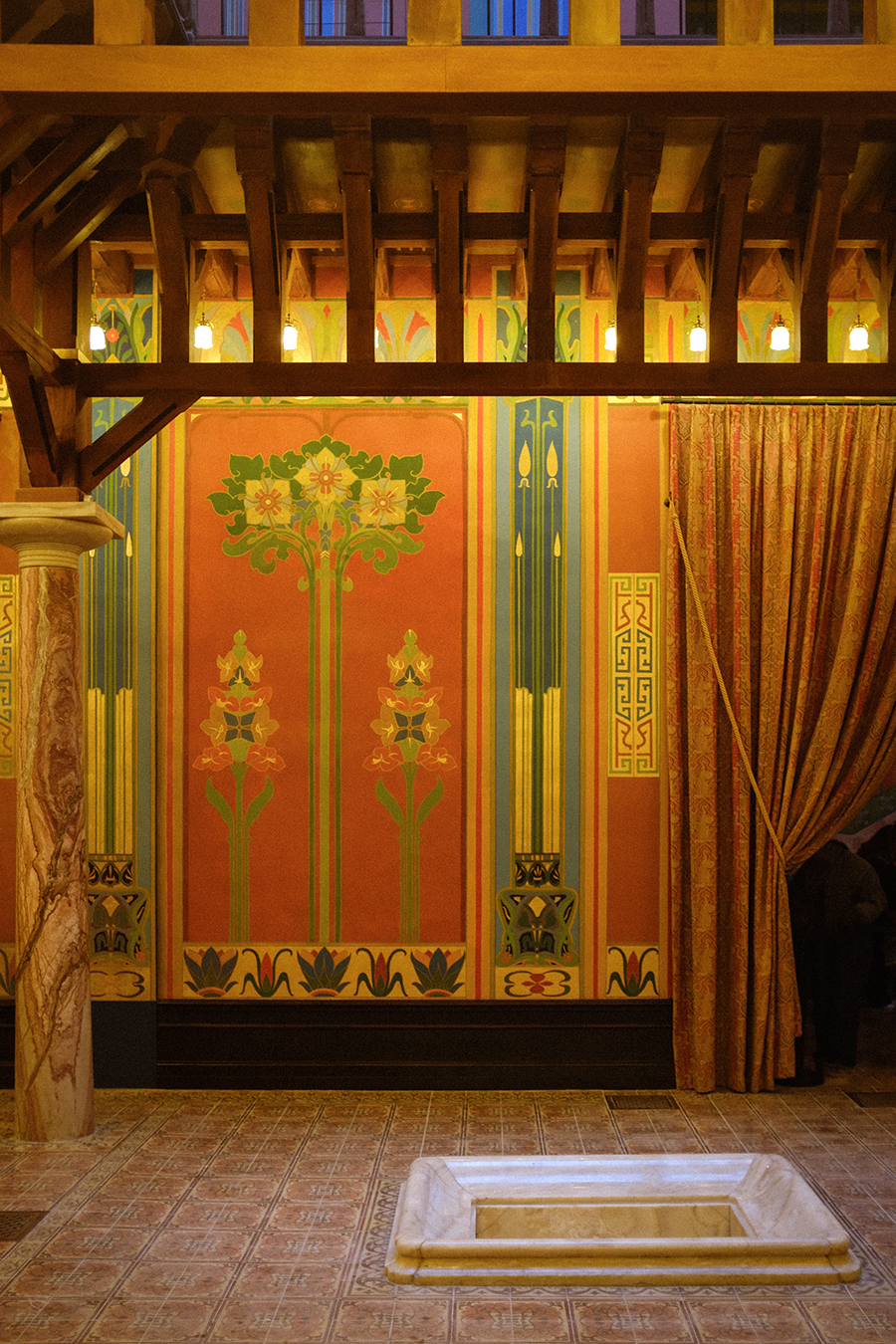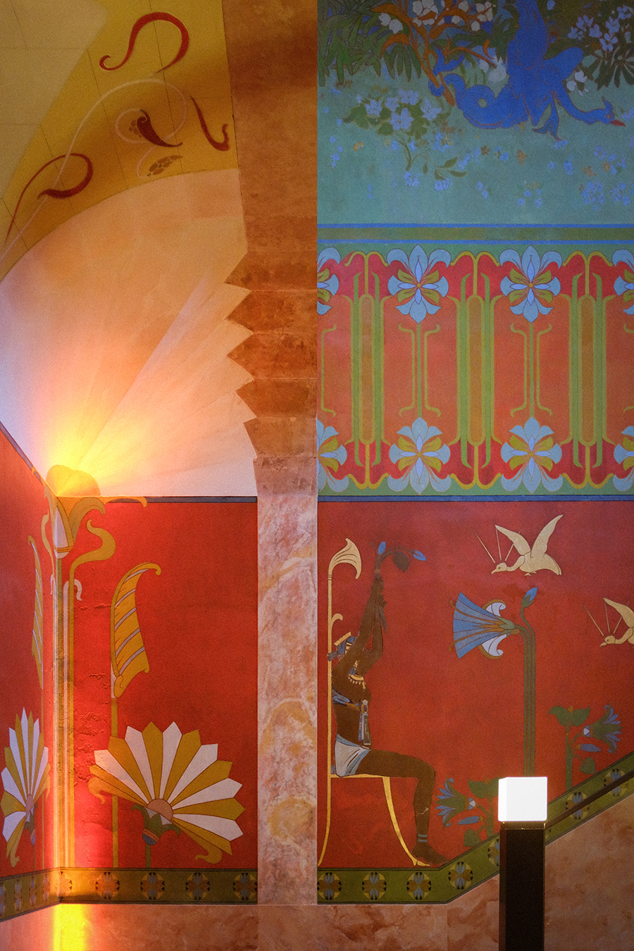 C'est un édifice éclectique où se croisent des séquences Art nouveau et néo-grecques ainsi que de grands décors procédant de l'égyptomanie ou de l'orientalisme.