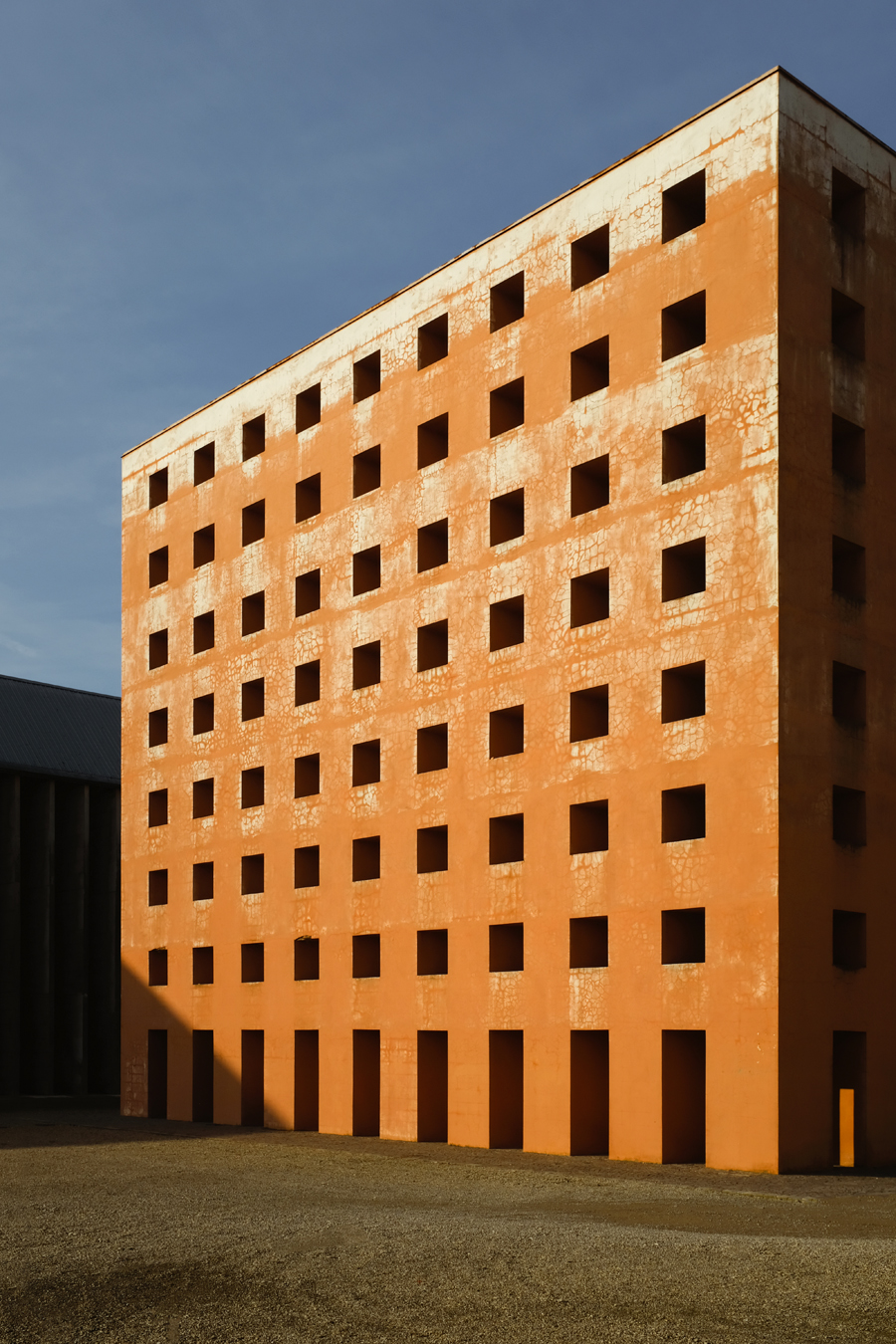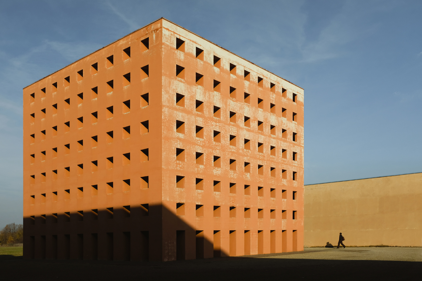 Le cube orange, comme une œuvre du peintre Giorgio De Chirico, situé au milieu du site, abrite l'ossuaire du cimetière.