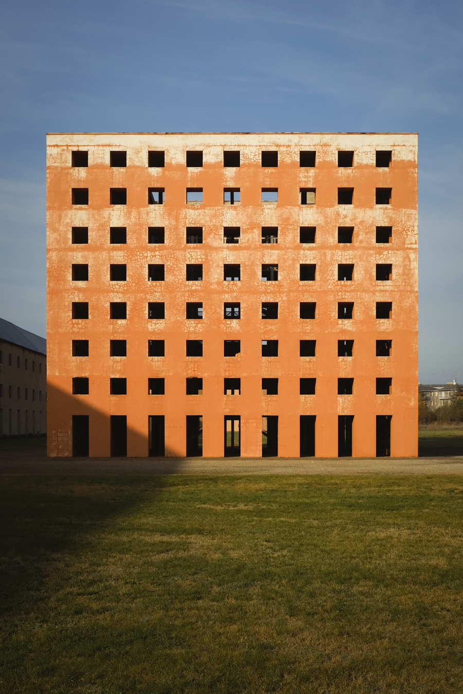 Le cube orange, comme une œuvre du peintre Giorgio De Chirico, situé au milieu du site, abrite l'ossuaire du cimetière.